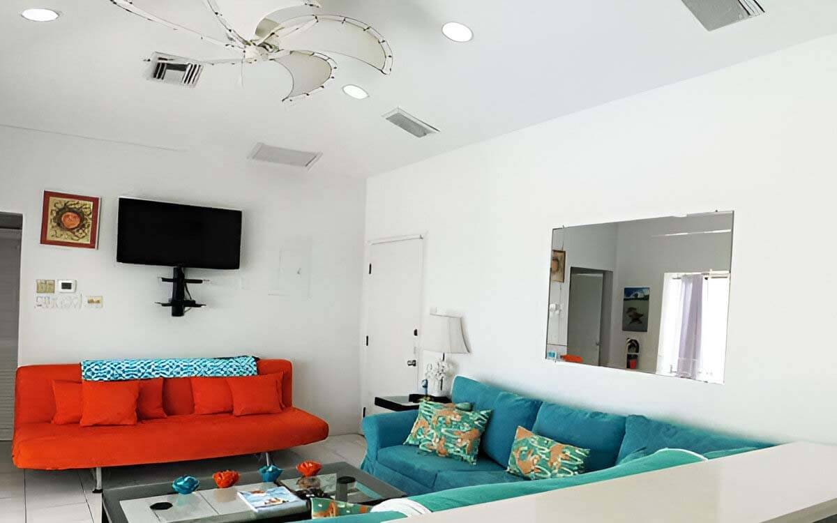 Lovingly renovated in 2010 with teak patio furniture, hardwood bedroom floor (King bed, oversized chair that converts to a twin bed to accommodate a child), Silestone countertops, unusual artworks, instant hot water, comfy sofas (the larger one in the living area converts to a queen bed), fully stocked kitchen with everything you need to make even a thanksgiving dinner.