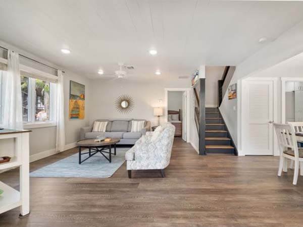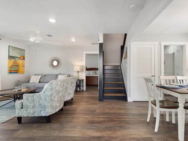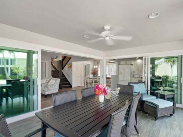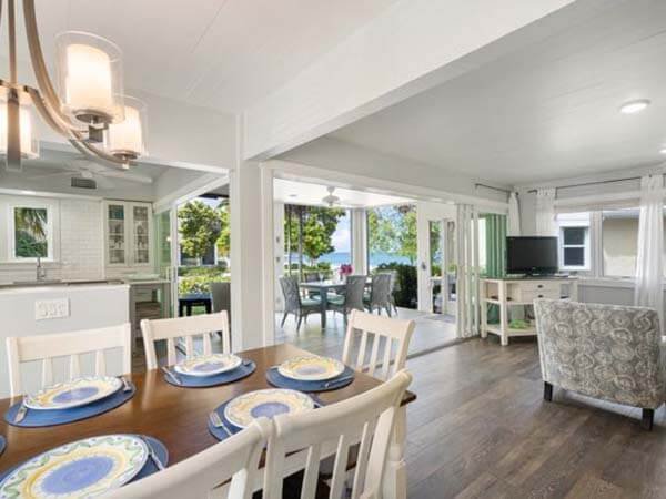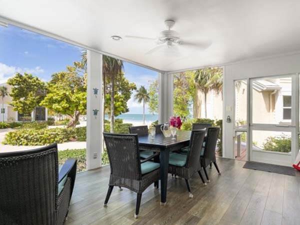 This is a 2-story villa located on the beach, very clean, spacious, and comfortable. With fully equipped kitchen, outdoor charcoal grill, 2 bedroom 2 bath, accommodations for 6. Central air conditioning, TV, WIFI -wireless internet, ceiling fans add to your comfort. Parking right outside the front door. The large lanai is adjacent to the living room and kitchen.