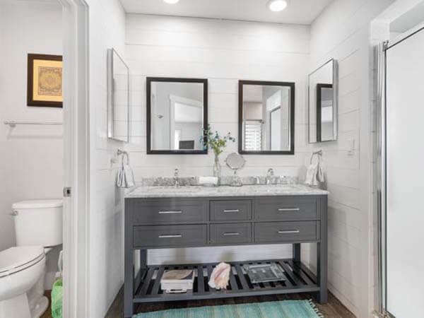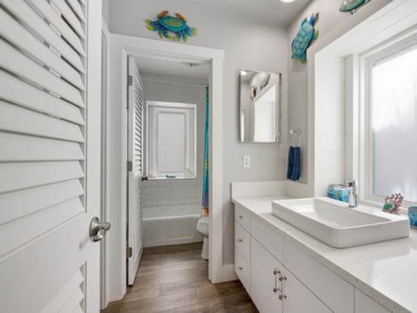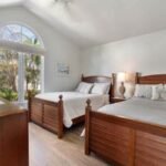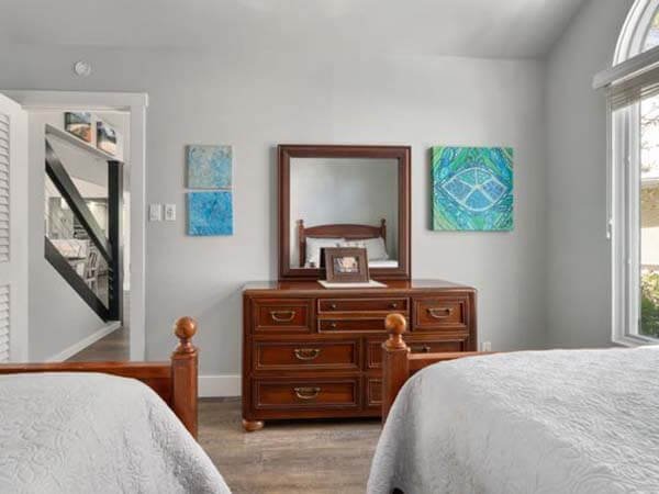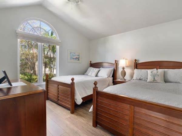 The 1st-floor guest bedroom has 2 double and a full bath.