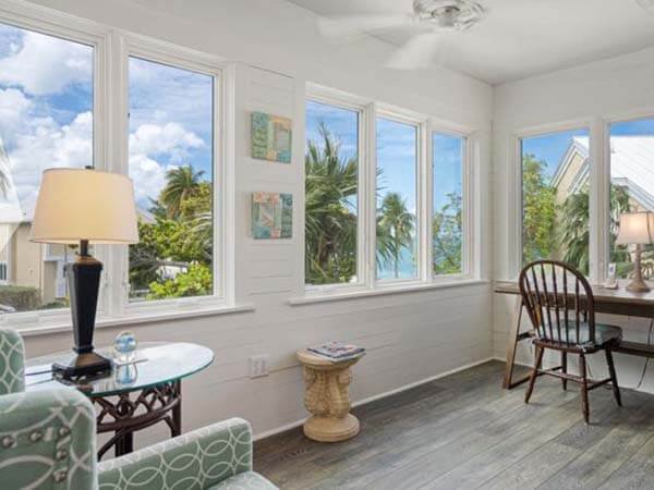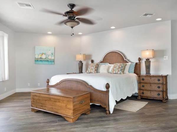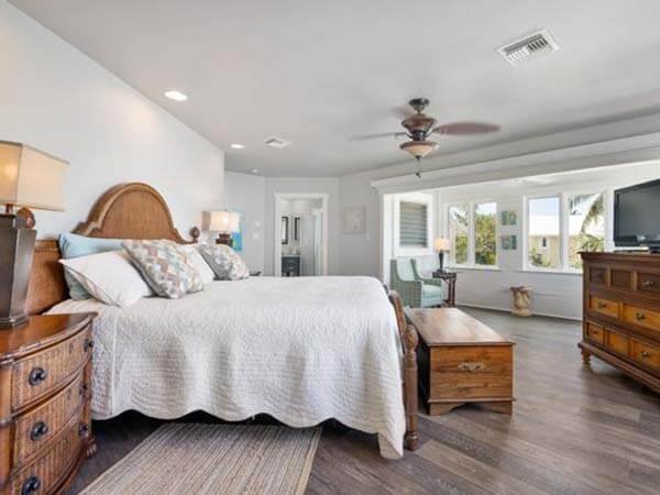 It has a separate walk-in shower and tub and a king-size bed and a walk-in closet. The master suite has a large enclosed lanai with a view of a crystal clear view of the ocean. It has a separate walk-in shower and tub and a king-size bed and a walk-in closet.