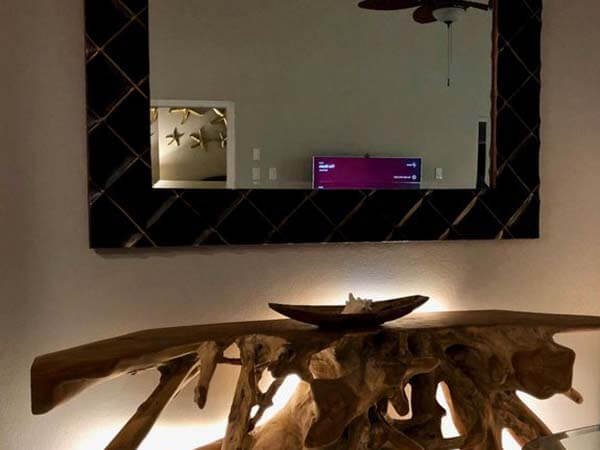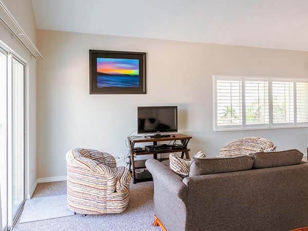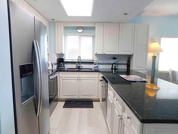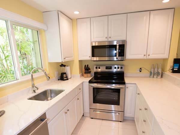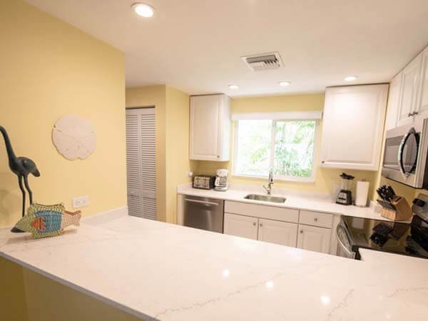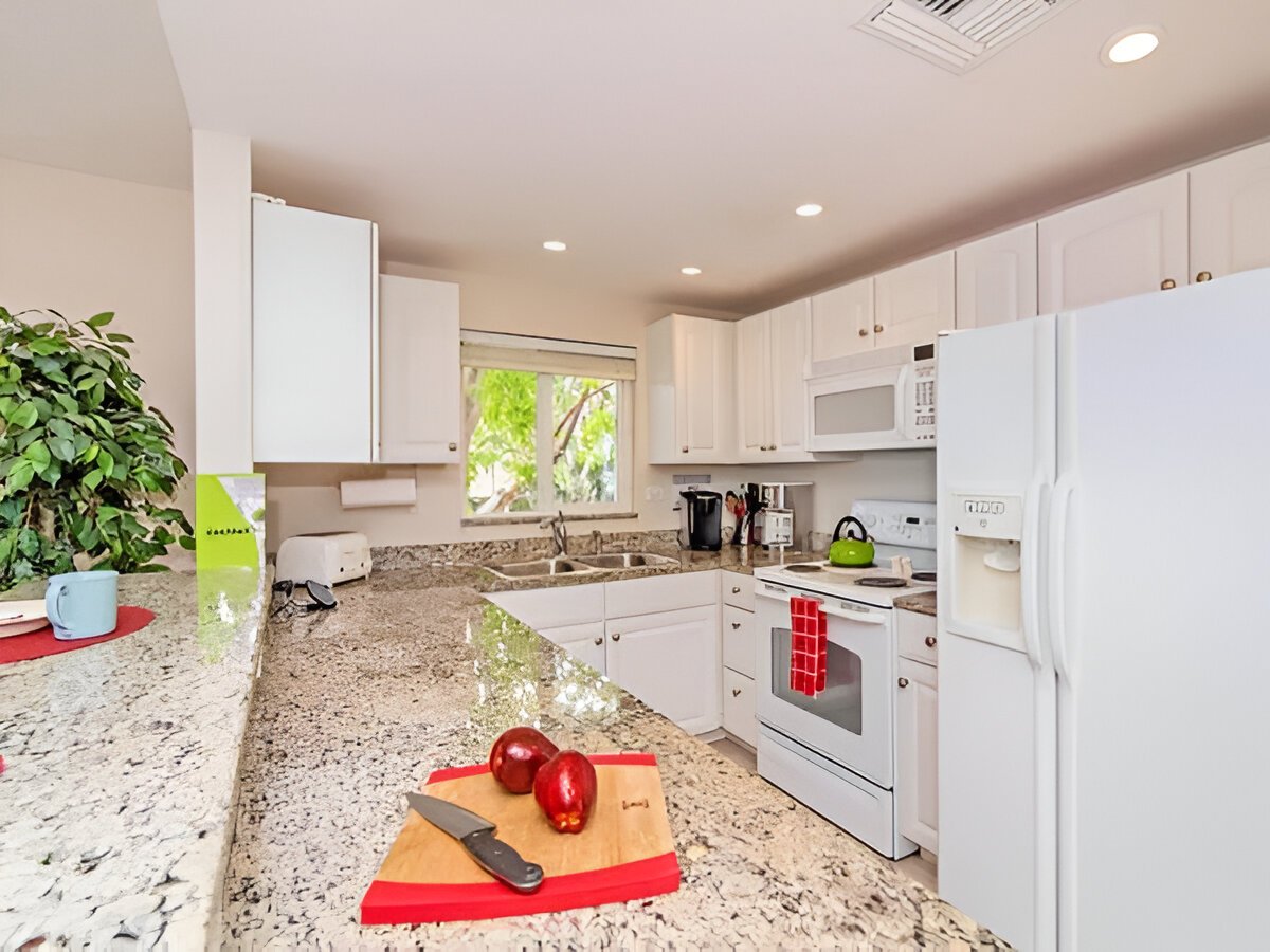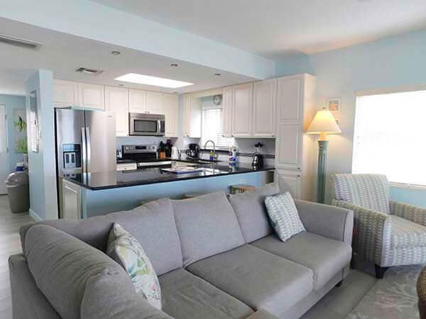Lovingly renovated in 2010 with teak patio furniture, hardwood bedroom floor (King bed, oversized chair that converts to a twin bed to accommodate a child), Silestone countertops, unusual artworks, instant hot water, comfy sofas (the larger one in the living area converts to a queen bed), fully stocked kitchen with everything you need to make even a thanksgiving dinner.