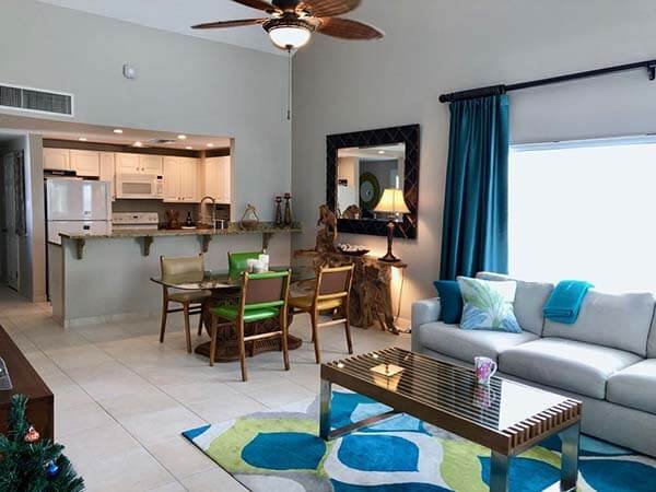 Mi Casa, Su Casa is exactly what it sounds like, a home from home. This is a one bed, one bath 1039 sq foot condo with a large master bedroom (bamboo sheets), a good sized living area, a spacious kitchen and a bathroom (bamboo towels) with a bath/shower combo.